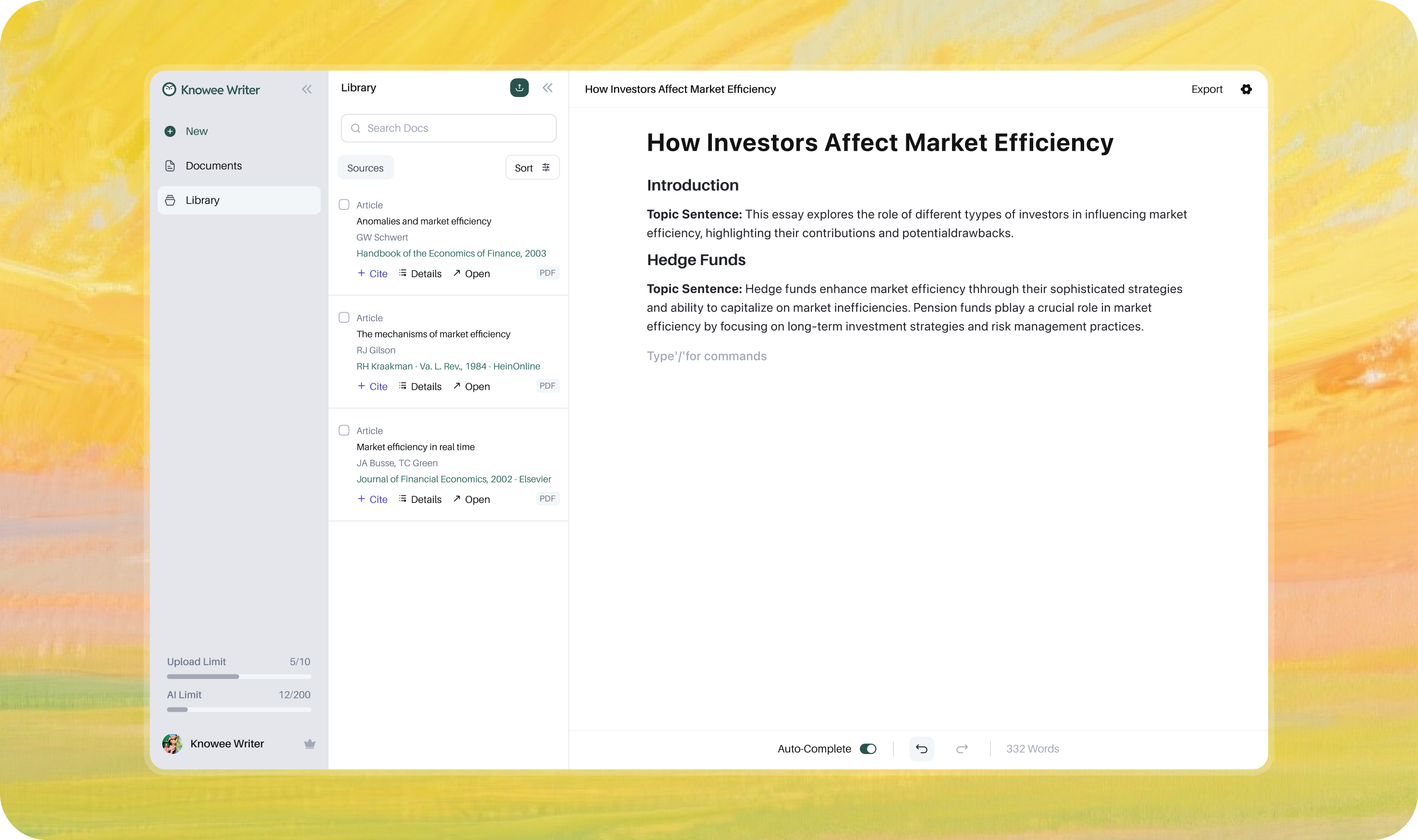 Your all-in-one academic writing assistant with smart citations, intelligent auto-complete, and personalized writing support.